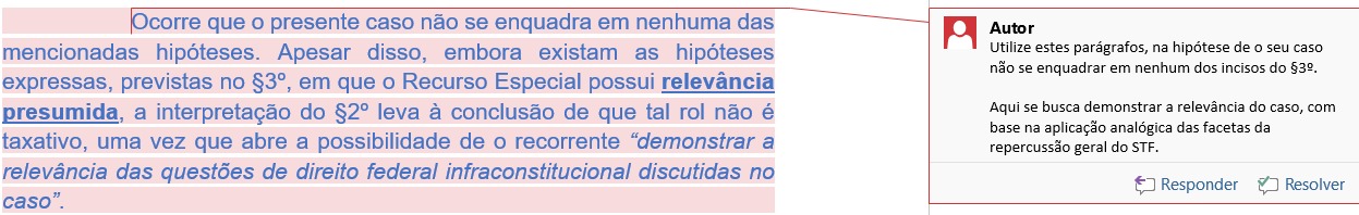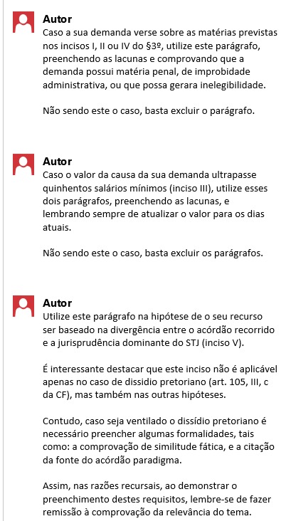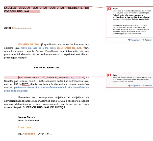Toda a fundamentação necessária para a admissibilidade do seu Recurso.